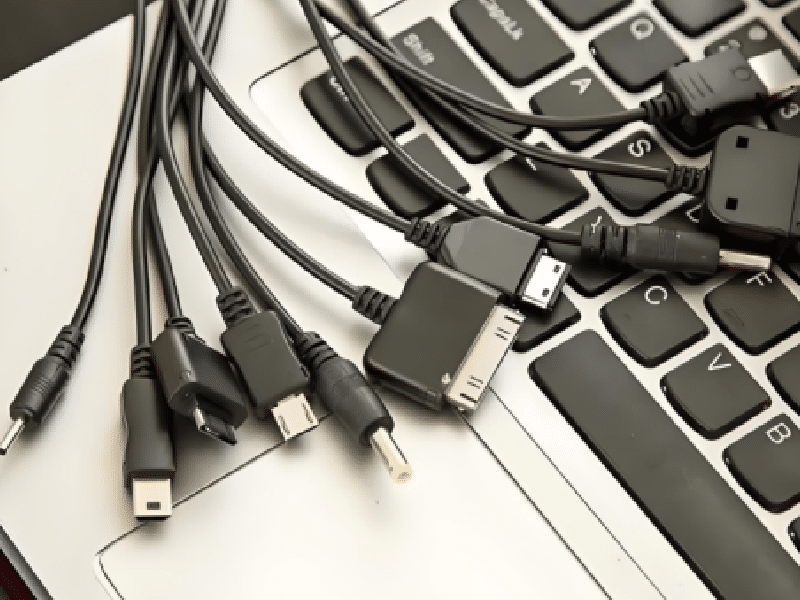 The USB-A port is flat and rectangular, the USB-B port is square with angled corners, while the USB-C port is compact and oval-shaped. Familiarity with these distinct shapes will help you quickly identify cable types.